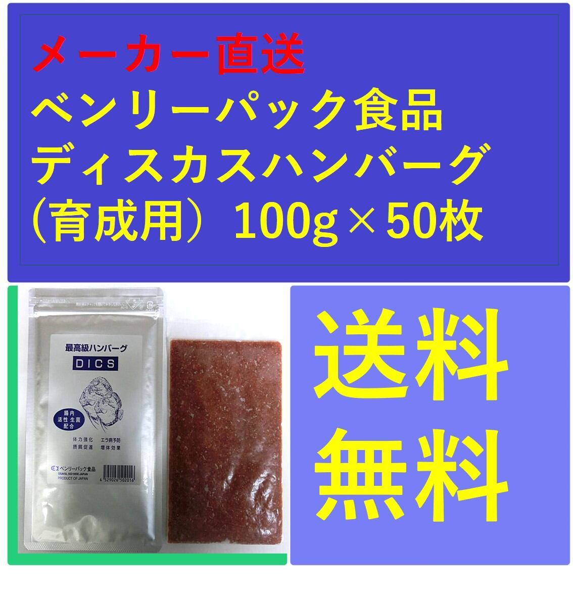 ディスカスハンバーグ(育成用)100g×50枚 メーカー直送 ベンリーパック食品 送料無料  商品コード 100217